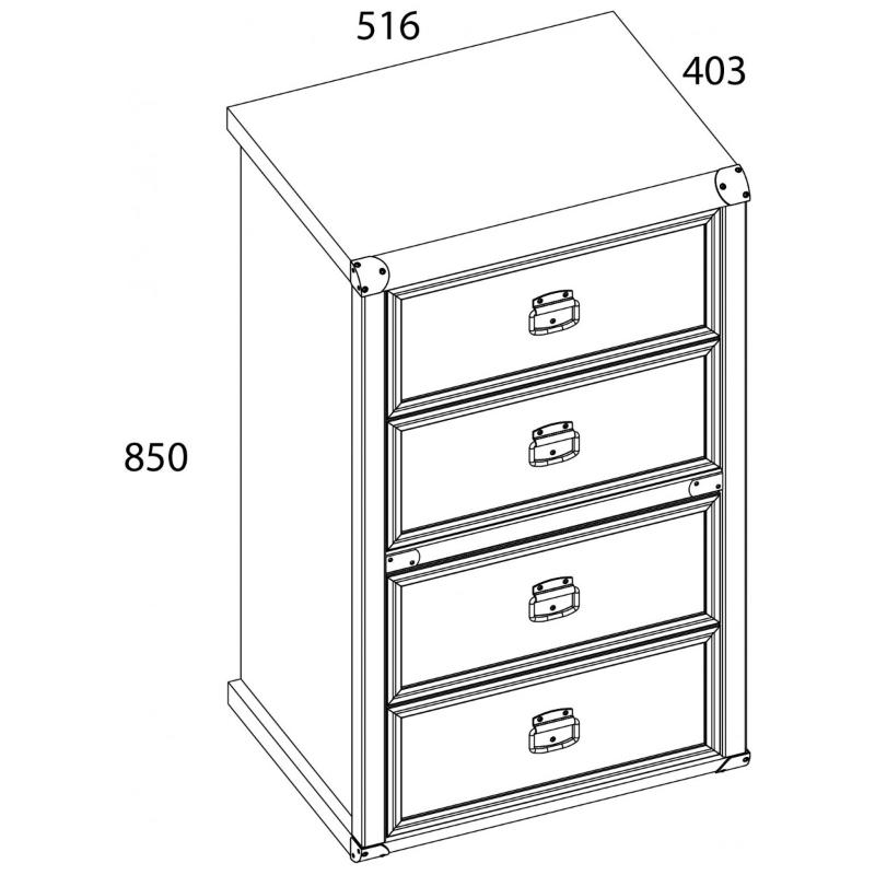 Комод 4S/50 MAGELLAN отличается от комода 4S шириной. Такой элемент послужит для оформления спальни и молодёжной комнаты небольшой площади и выделит свободное пространство в помещении. Комод 4S/50 имеет прямую конструкцию. Конструкция элемента представляет собой четыре выдвижных ящика (4S), расположенных друг над другом.