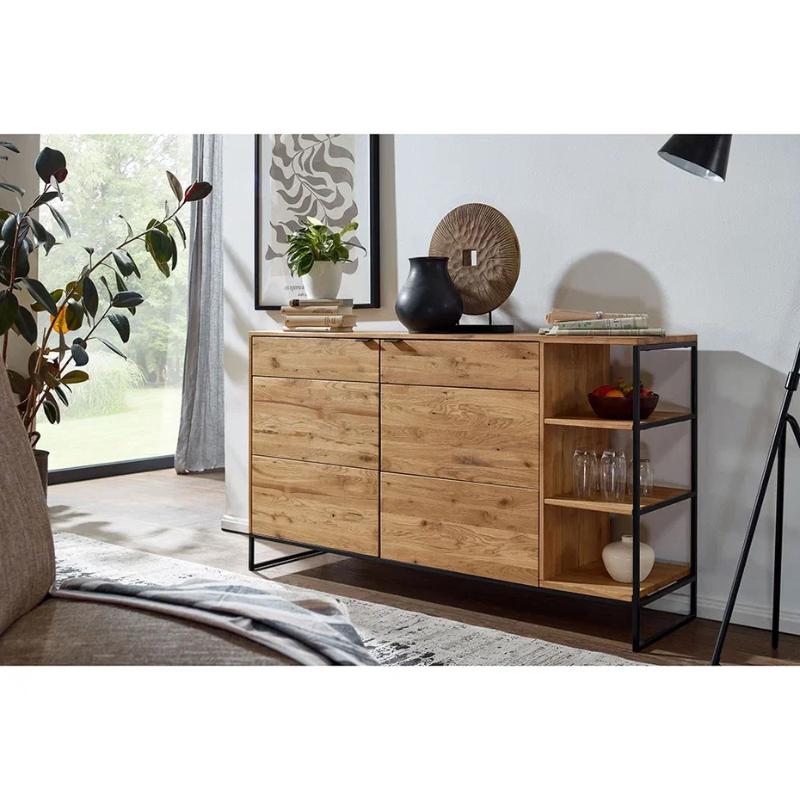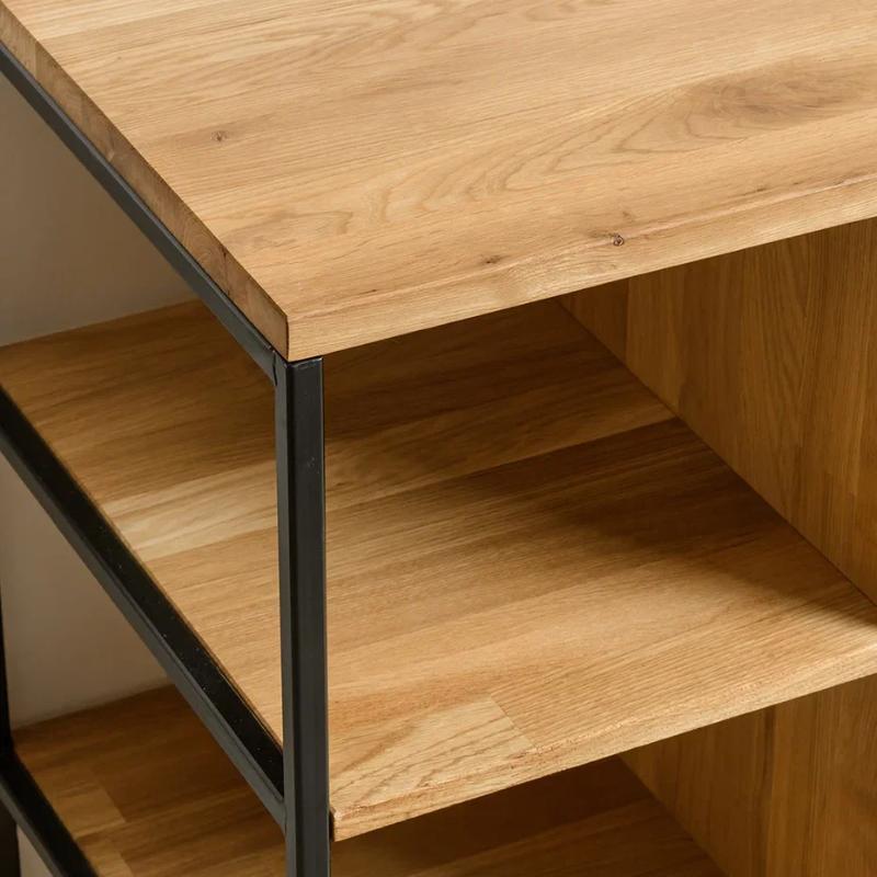 Серия Манхэттен выполнена в стиле лофт из массива дуба. Поступает в собранном виде. Металлический каркас сеч.15х15 мм цвет черный, . Задняя стенка, дно ящиков - фанера, облицованная шпоном дуба. Фурнитурв: направляющие скрытого монтажа с доводчиком Hettich, петли с доводчиками GTV, ручки Trex GTV металл цвет черный. Вес изделия 63,5 кг. Фотографии на сайте могут не передавать точный тон мебели, узнавайте у менеджеров.