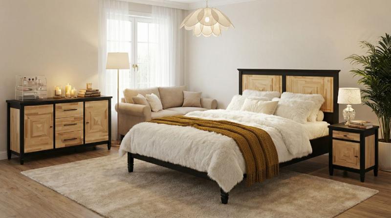 Коллекция Норд Стар (North Star) — воплощение благородной сдержанности и утончённого стиля. Мебель из массива северной берёзы с глубоким тёмным покрытием подчёркивает природную красоту древесного рисунка, создавая в спальне атмосферу изысканности и умиротворения.