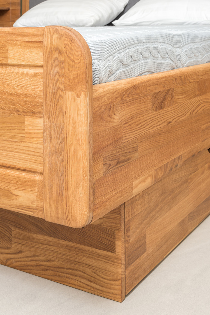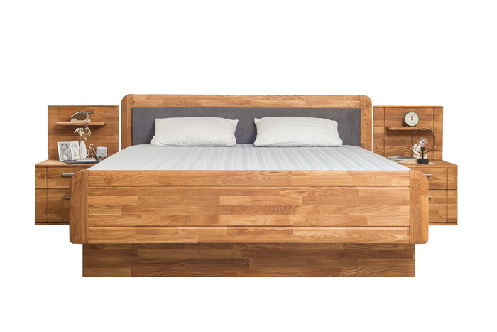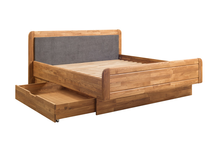 Тумбочки приобретаются отдельно,Кровать выполнена в скандинавском стиле. Смотрится современно и гармонично, благодаря простате своих линий и естественной текстуре дерева. Используется 100% массив дуба. Покрытие интерьерными маслами от компании Хенкель. 100% ЭКО отделка, масла не выделяют никаких токсичных частиц. Гарантия защиты и долговечности древесины, сохранение ее текстуры, внешнего вида и естественности. Дубовый настил или ортопедическое основание в комплект не входит и приобретается отдельно. Выдвижные ящики на роликах. Габаритные размеры: