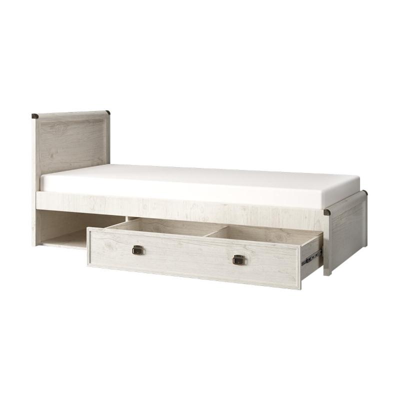 Кровать 90 MAGELLAN – односпальная, размер спального места – 900*2000 мм. Конструкция кровати представляет собой сплошное изголовье прямоугольной формы, изножье прямоугольной формы, а также вместительный выдвижной ящик, открытую нишу.