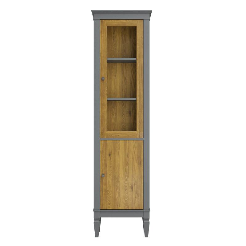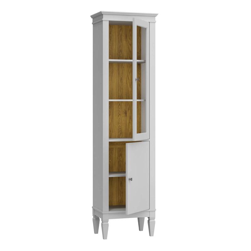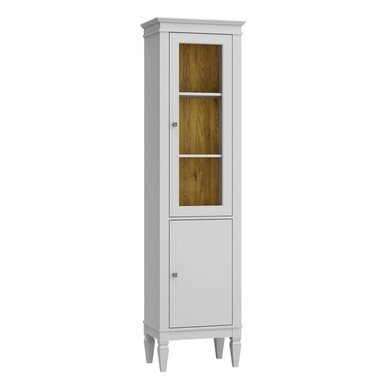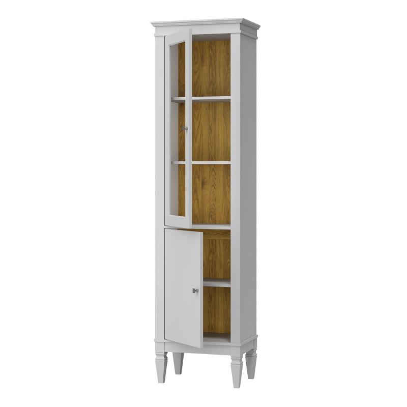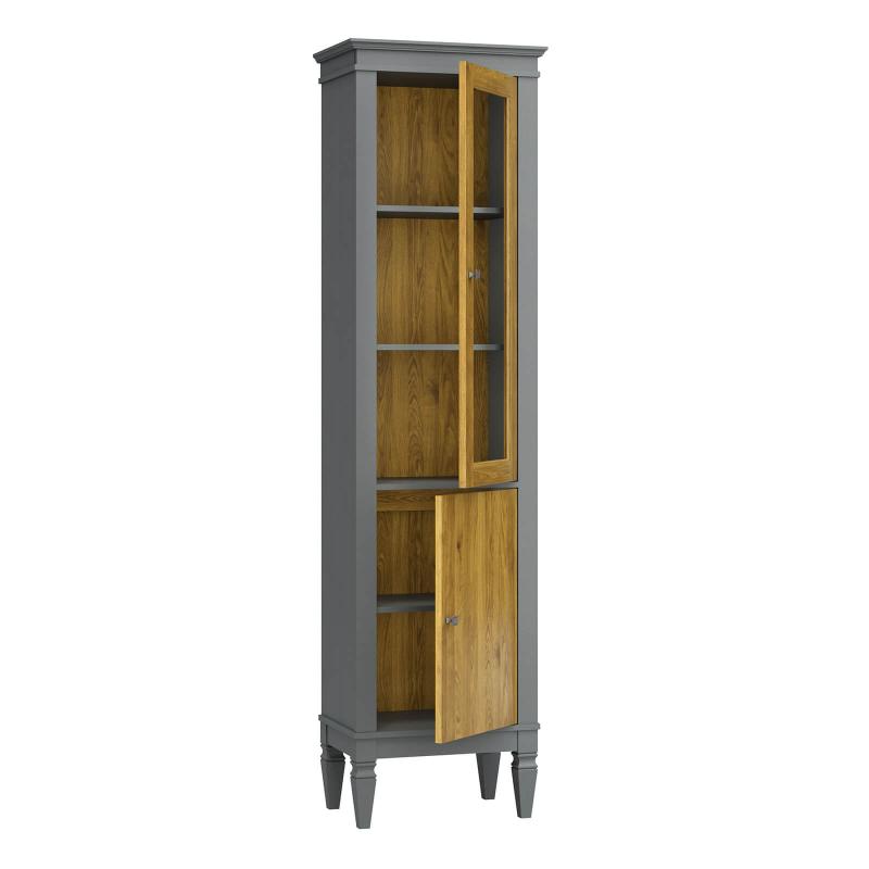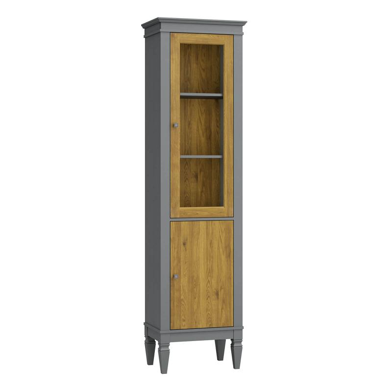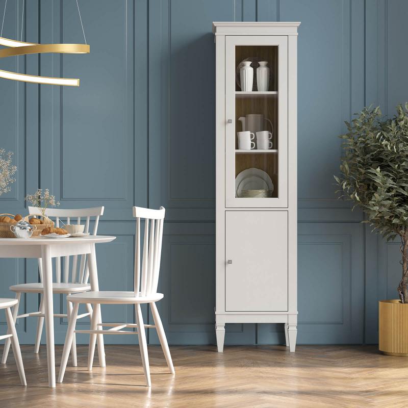 Стеклянная дверь не только украшает изделие, но и обеспечивает визуальный доступ к содержимому, сохраняя предметы чистыми и защищёнными от пыли.