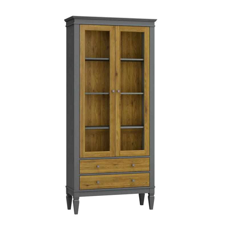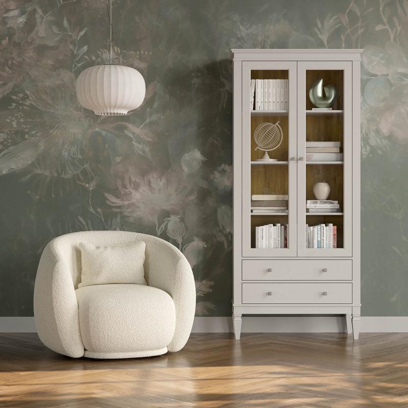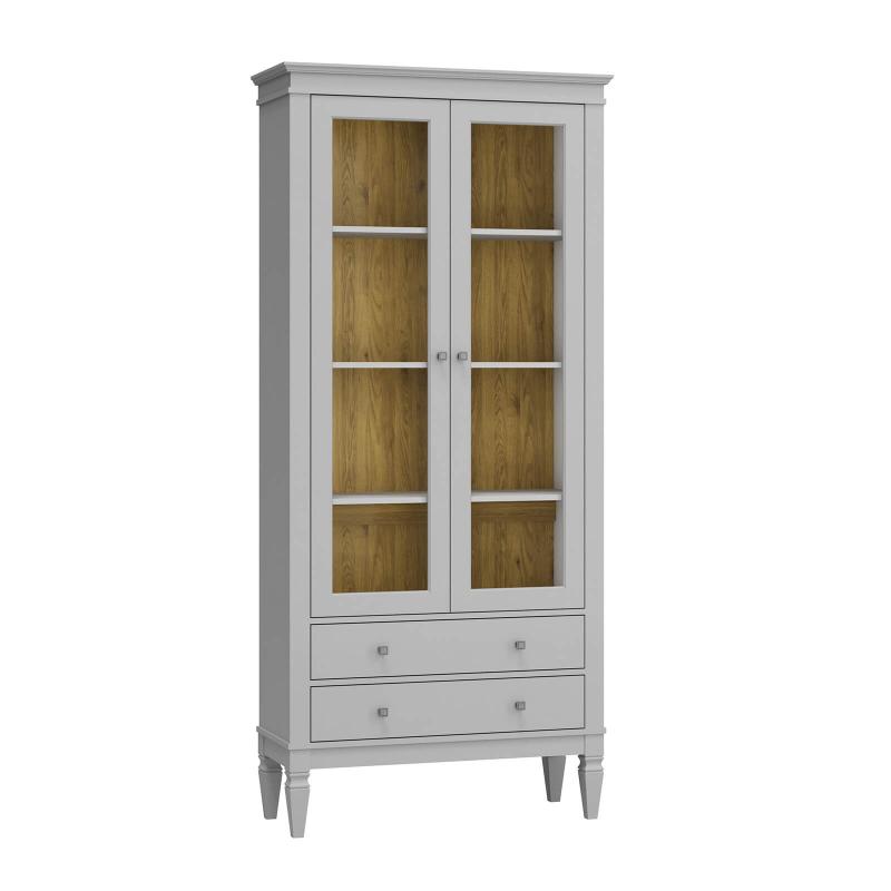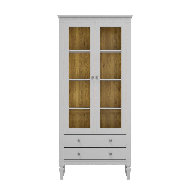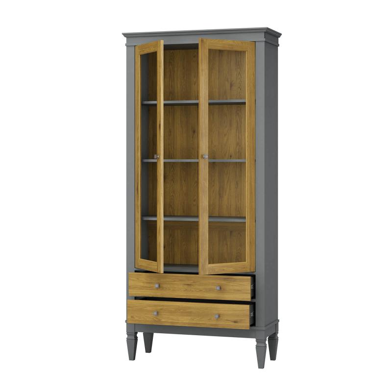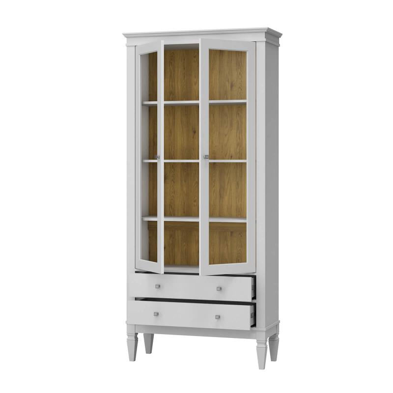 три широкие полки за стеклянными дверями — для эффектной демонстрации книг, сервизов или декоративных предметов;