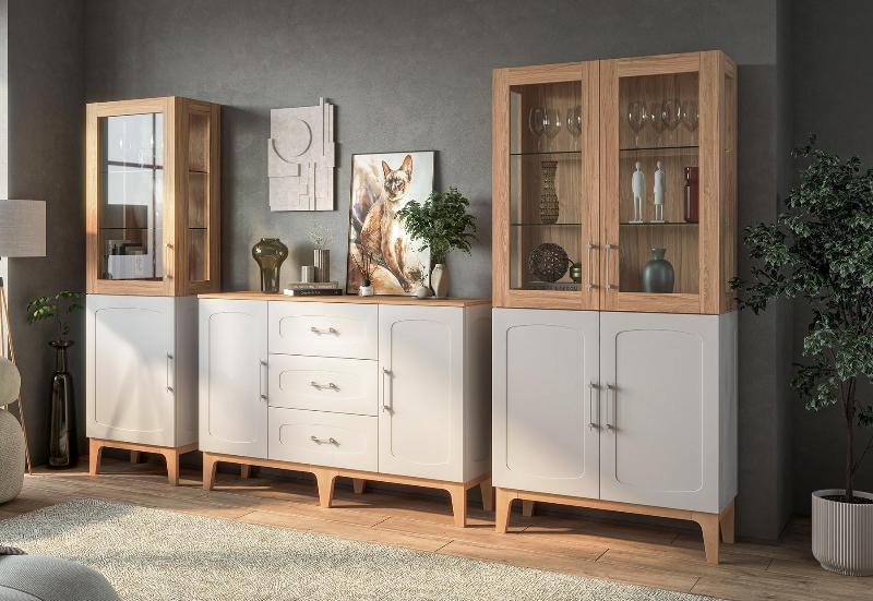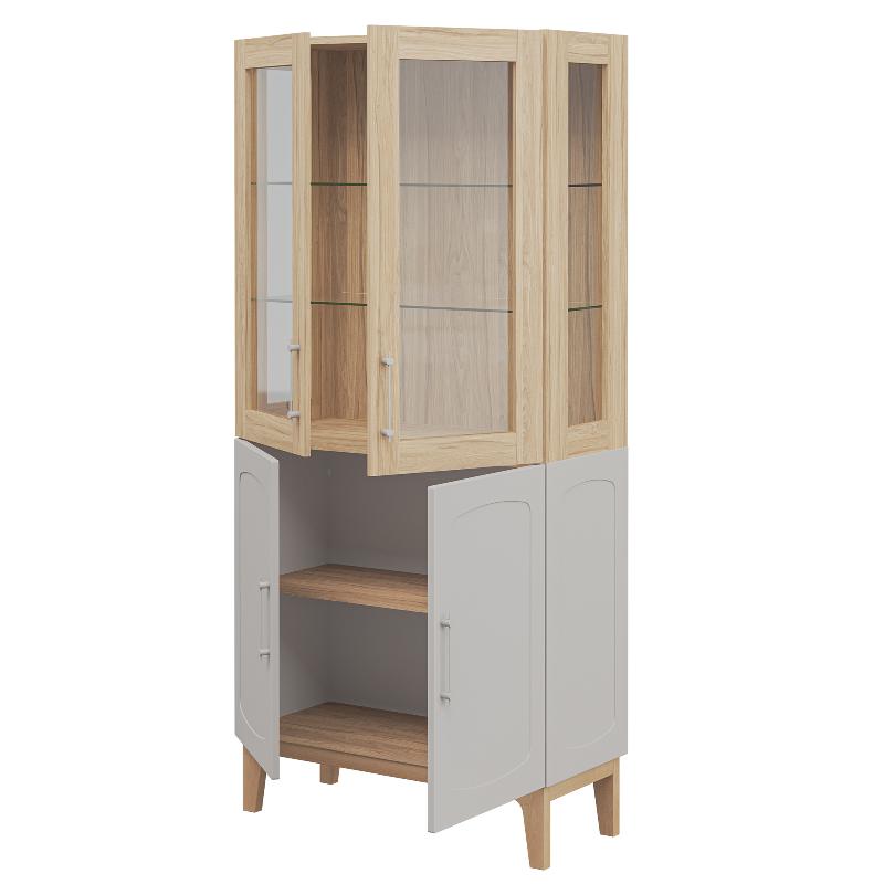Стеклянные витрины добавляют лёгкость и глубину, создавая эффект простора и ощущение порядка.
