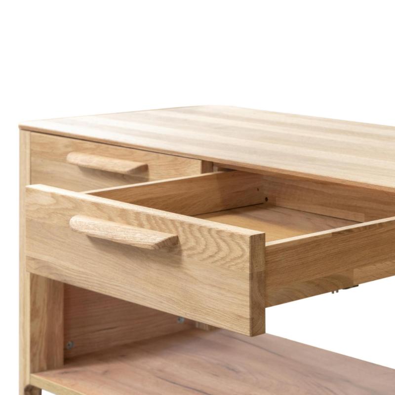 Серия Атланта выполнена в скандинавском стиле, полностью из массива дуба. Поступает в собранном виде, кроме кроватей. Каркас-массив дуб, фасад- массив дуб. Задняя стенка комодов и шкафов, дно ящиков - фанера, облицованная шпоном дуба. Направляющие и петли с доводчиками. Обивка изголовья кровати в ткани велюр. Основание для кровати не входит в комплект, приобретается отдельно. Фотографии на сайте могут не передавать точный тон мебели, узнавайте у менеджеров.