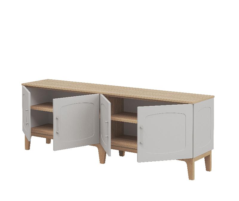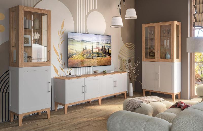Изящные ножки из массива дерева придают композиции воздушность и визуально расширяют пространство, наполняя его светом. Инновационное матовое покрытие фасадов – это тактильное наслаждение, мягкая бархатистая поверхность, которая словно приглашает прикоснуться.