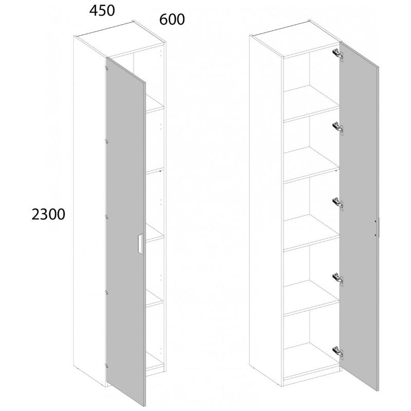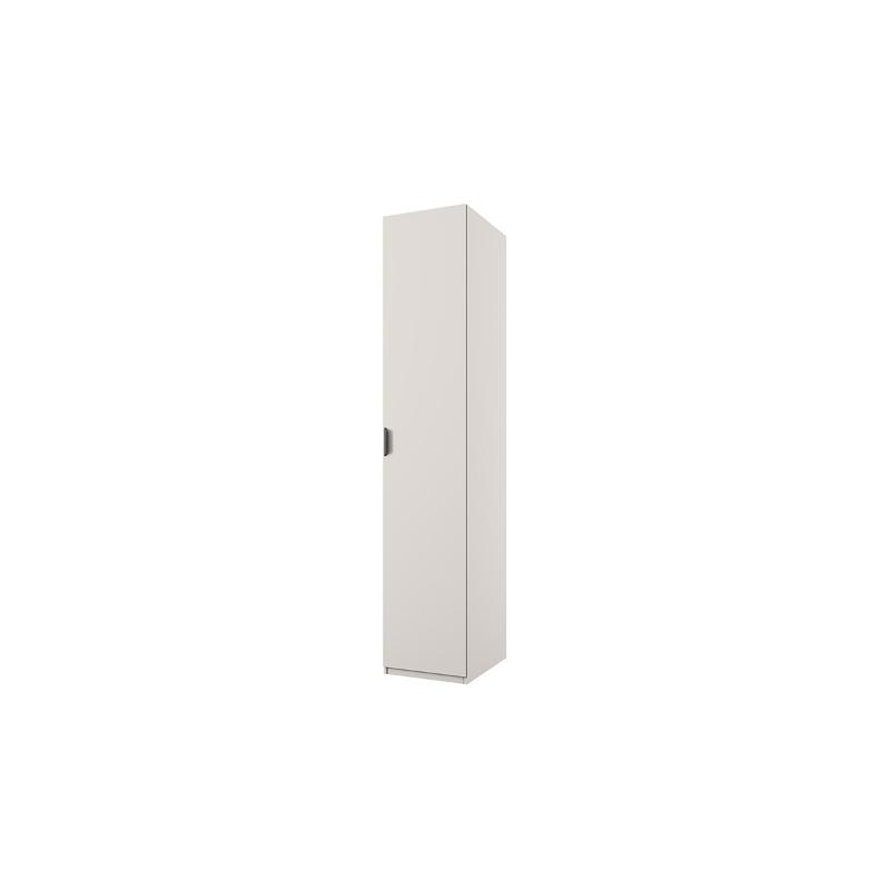 Шкаф 1DG MODERN – организация хранения предметов одежды и других вещей в любой по функционалу комнате наряду с другими элементами шкафной группы коллекции MODERN, с такой же высотой и глубиной. Также, данная модель создаст оптимальную функциональность и как отдельно стоящий предмет мебели, так как по конструкции предусмотрены глубокие полки ЛДСП и стационарная штанга. В свою очередь, это позволит хранить одежду на вешалках и складировать её, размещая на полках. При необходимости, некоторые полки можно изъять для навешивания и длинных и коротких вещей. Конструкция шкафа 1DG прямая, представляет одно отделение с полками ЛДСП и штангой за одной глухой дверью (1D). Дверь распашная, крепится на петли к боковому корпусу изделия. Особенностью элемента являются вместительные полки за счёт глубины изделия, высота – 2300 мм, возможность составлять с элементами шкафной группы с такой же глубиной и высотой. Основные характеристики: Вес изделия: 52,29 кг. Корпус Материал: ЛДСП - 16 мм. Цвет: персидский жемчуг 810 PO. Полки: ЛДСП - 16 мм, цвет – персидский жемчуг 810 PO. Задняя стенка: ХДФ - 2,5 мм, цвет – дуб артисан. Кромка: меламиновая бумага - 0,3 мм, ПВХ – 0,4 мм, 1,8 мм, цвет – кашемир, дуб американский, дуб крафт золотой. Фасад Материал: ЛДСП – 16 мм, цвет – персидский жемчуг 810 PO. Фурнитура Ручки: металлические, SCHWINN. Петли: с доводчиками. Тон мебели может отличатся от фотографии на сайте.