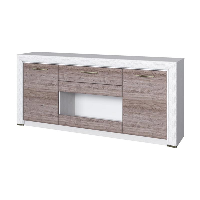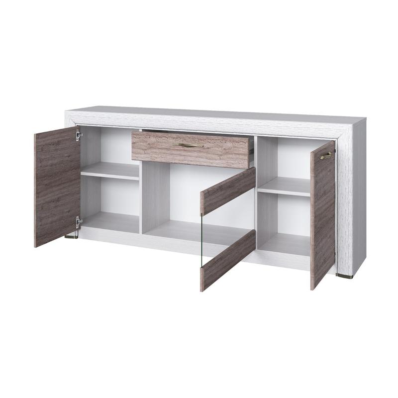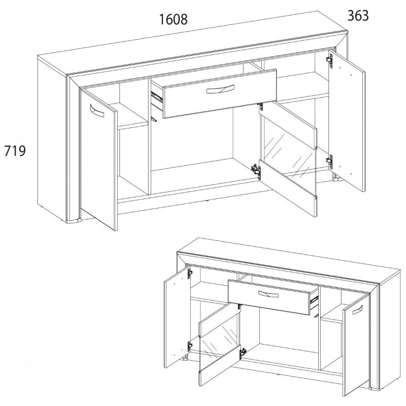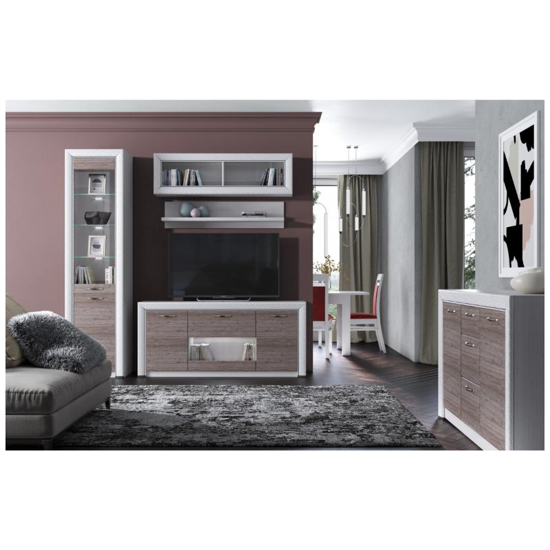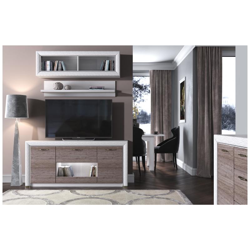 Увеличенная высота тумбы Olivia RTV 1V2D1S предоставит еще больше возможностей для размещения на ней любой техники. Эта модель шириной 160 см и высотой 71 см подойдет для ТВ с любой диагональю, а также установки мультимедийных устройств и приставок. Она содержит одно открытое отделение, выдвижной ящик и три распашных дверцы с полками внутри. Удобному хранению ТВ техники способствует удлиненная форма модели.