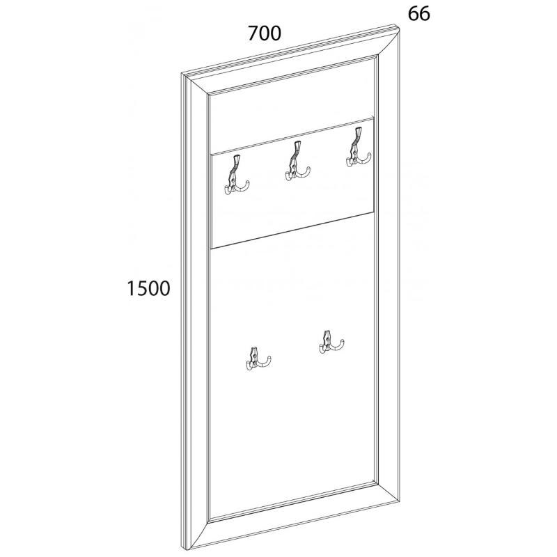 Вешалка Оливия компактна и практична в использовании, комбинируется с тумбой Оливия 1S по ширине (ш700). Может крепится на любой удобной высоте. Представляет собой плиту из ЛДСП, на которой располагаются металлические крючки для одежды в два ряда – верхний ряд (три крючка), нижний ряд (два крючка – для размещения детской верхней одежды либо других предметов). Основные характеристики: -ЛДСП (18 мм), цвет – Дуб анкона, Вудлайн кремовый; -дизайнерские декоративные планки с патиной (МДФ); -металлические крючки (сплав цинка и алюминия). Фотографии на сайте могут не передавать точный тон мебели.