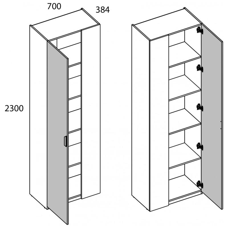 Шкаф 1D/K70 MODERN. Конструкция данной модели позволяет оформить угловые шкафные группы для большей оптимизации пространства. Можно установить в любом помещении по функционалу – гостиной, спальне, молодёжной/детской комнате, прихожей или гардеробной зоне. Конструкция шкафа 1D/K70 MODERN прямая, представляет одно отделение с полками ЛДСП за одной глухой дверью (1D) и стенкой передней (стационарная). Дверь распашная, крепится на петли к боковому корпусу изделия. Угловая композиция получается за счёт присоединения элементов шкафной группы глубиной 400 мм к стенке передней посредством крепежа. Особенностью элемента являются компактность, стильность, использование петель с доводчиками, высота – 2300 мм, установка угловой группы, практичная матовая текстура – персидский жемчуг. Основные характеристики: Вес изделия: 58,94 кг. Корпус Материал: ЛДСП - 16 мм. Цвет: персидский жемчуг 810 PO. Полки: ЛДСП - 16 мм, цвет – персидский жемчуг 810 PO. Задняя стенка: ХДФ - 2,5 мм, цвет – дуб артисан. Кромка: меламиновая бумага - 0,3 мм, ПВХ – 0,4 мм, 1,8 мм, цвет – кашемир, дуб американский, дуб крафт золотой. Фасад Материал: ЛДСП – 16 мм, цвет – персидский жемчуг 810 PO. Фурнитура Ручки: металлические, SCHWINN. Петли: с доводчиками. Тон мебели может отличатся от фотографии на сайте.