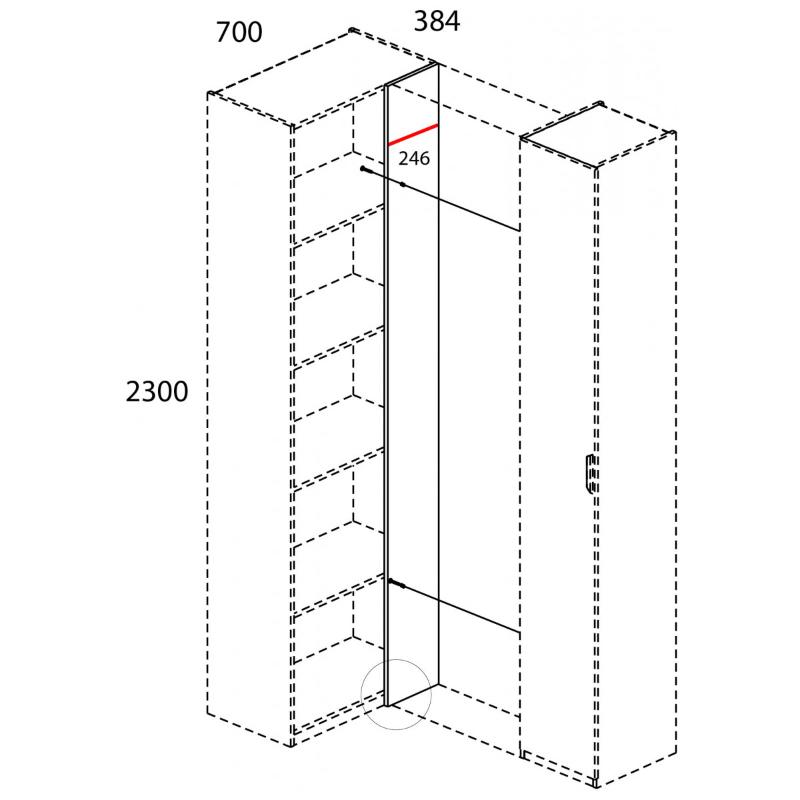 Материал: ЛДСП – 16 мм, цвет – персидский жемчуг 810 PO; зеркало – 4 мм; общая толщина фасада – 20 мм.