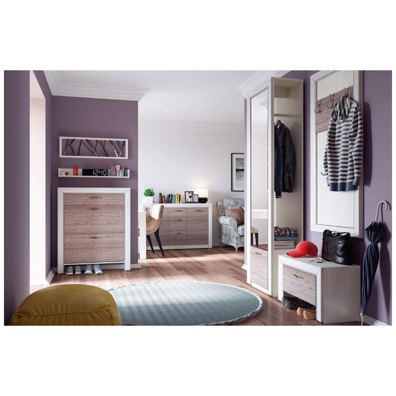 Удобное расположение вещей должно начинаться с порога, а именно – с прихожей. Шкаф Оливия 1DZ имеет оригинальный дизайн и даёт возможность организовать практичную прихожую, даже с минимальным набором элементов. Шкаф 1DZ – прямой. Имеет одно отделение для хранения верхней одежды, в котором отсутствуют боковые стенки корпуса для удобного и быстрого размещения одежды, и одно отделение с большой нишей за глухой дверью (1D), зеркало. Основные характеристики: -фасад - ЛДСП (18 мм), цвет – Дуб анкона; -дизайнерские декоративные планки с патиной (МДФ); -металлические ручки (сплав цинка и алюминия); -исключительность дизайна – отсутствие боковых стенок корпуса; -наличие зеркала. Фотографии на сайте могут не передавать точный тон мебели.
