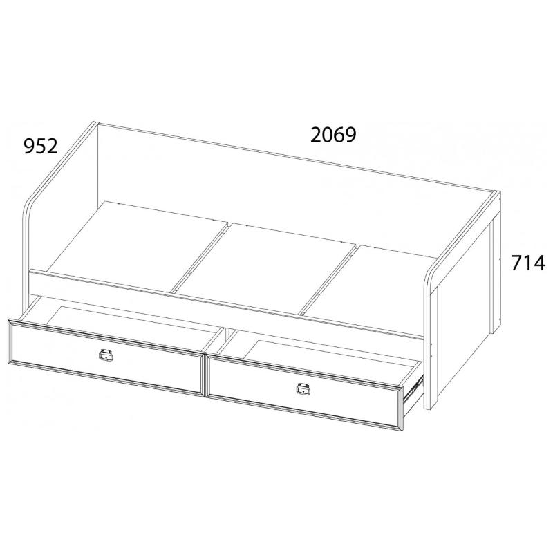 Кровать 90-2 MAGELLAN – односпальная, размер спального места – 900*2000 мм. Конструкция представляет собой корпус с бортами, два выдвижных ящика, основание (щиты ЛДСП). Такой вариант кровати очень удобен в эксплуатации - боковой борт будет сохранять целостность обоев или покраски, защищать от соприкосновения со стеной.