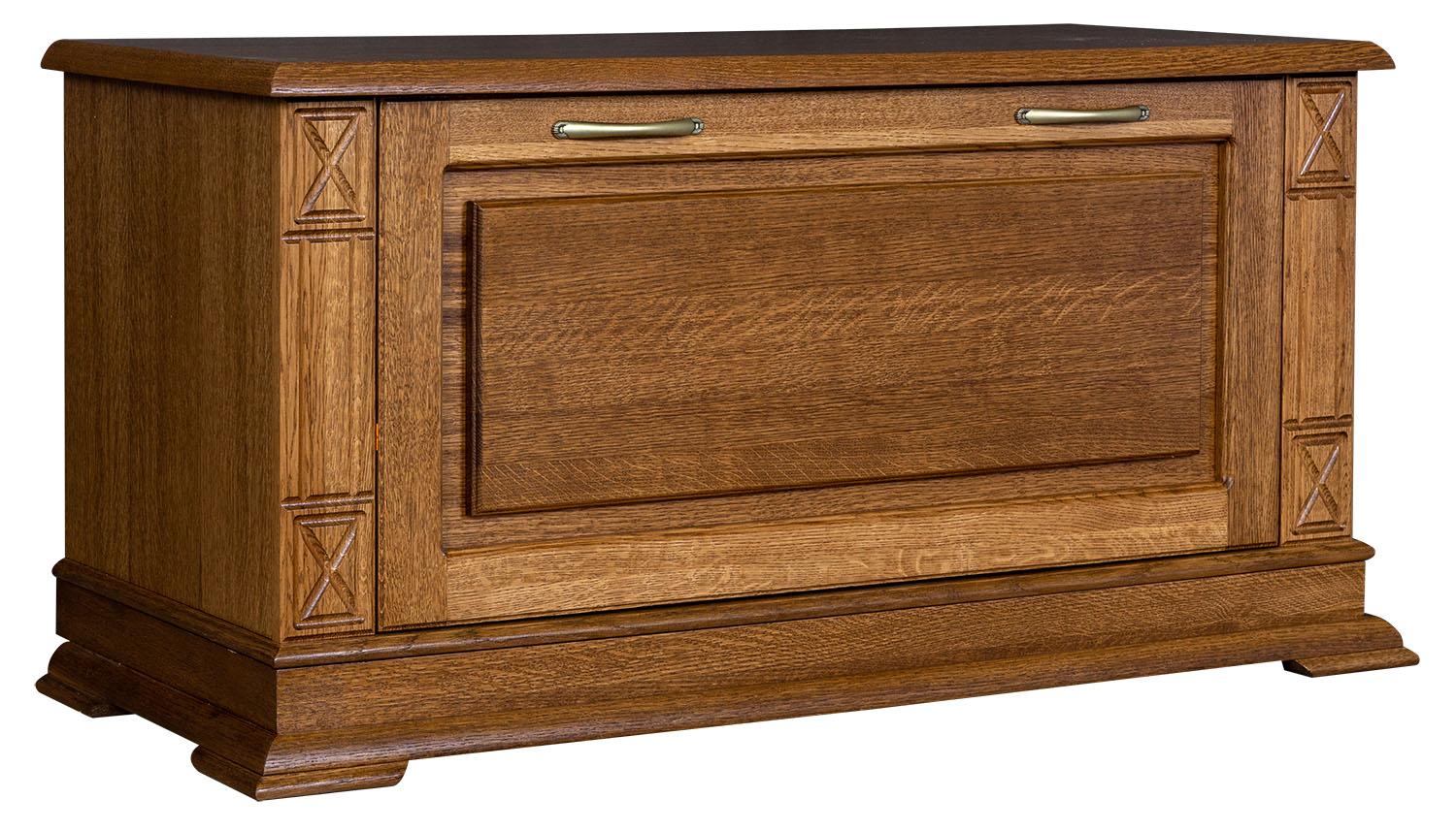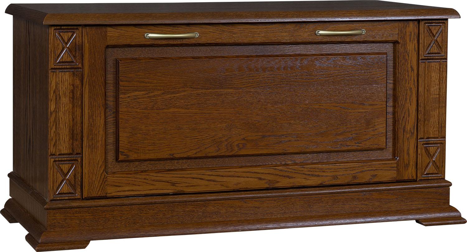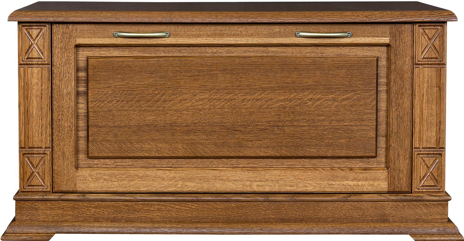 филёнка – массив дуба или стекло с фацетом. Крышки тумб представлены плитой ДСП, облицованной шпоном.