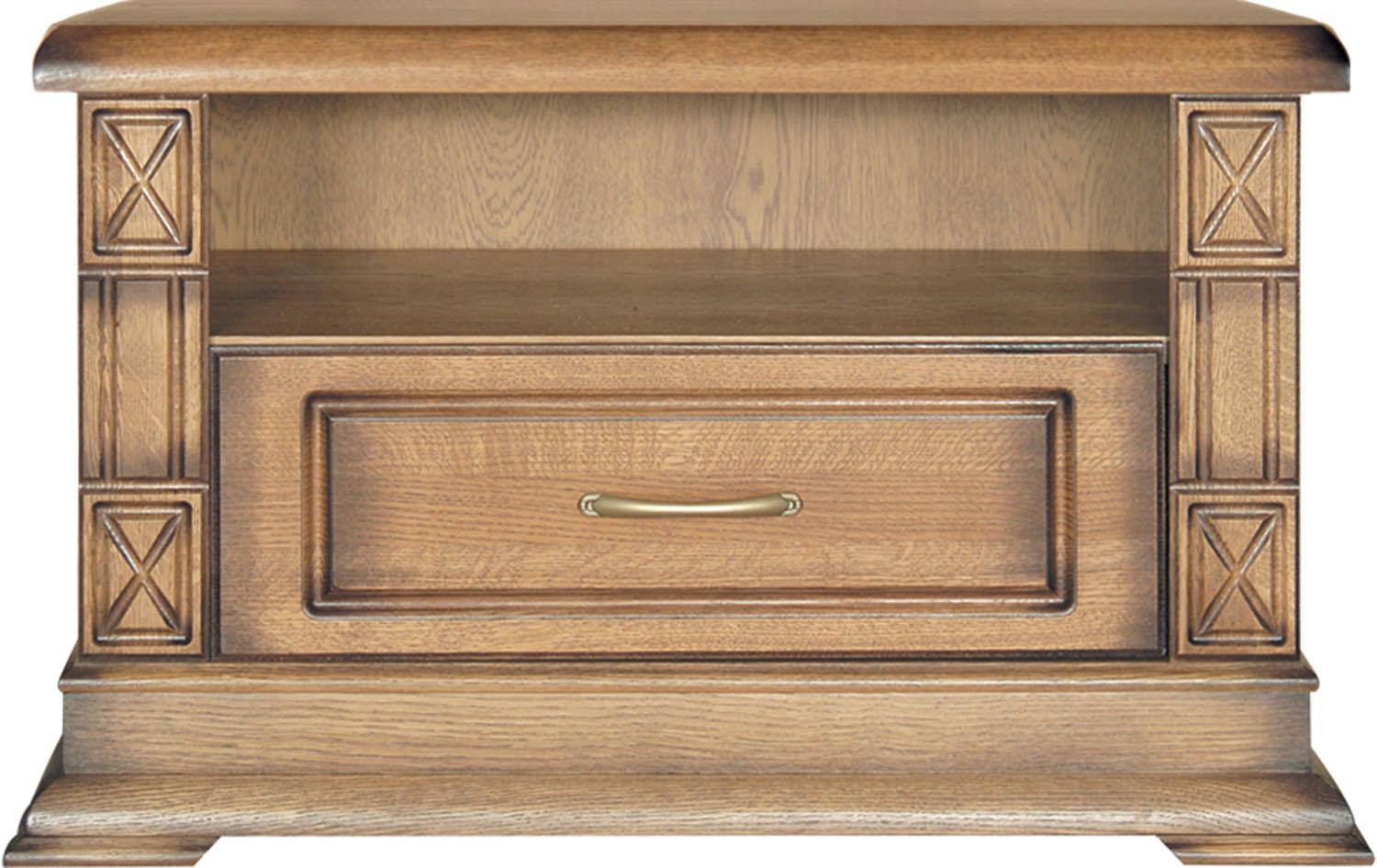 филёнка – массив дуба или стекло с фацетом. Крышки тумб представлены плитой ДСП, облицованной шпоном.